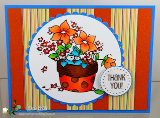 I colored the Flower Pot Chick Stamp with my Copic Markers, applied some Glossy Accents to the adorable chicks eye, cut it out with my Spellbinder Dies, and added Recollection Pearls to the tiny flowers. With the school year quickly coming to an end I'm going to be needing Thank You cards, and this image is perfect for one of Katie's educational team members. The sentiment is a SRM Sticker from the #53004 Thanks set.