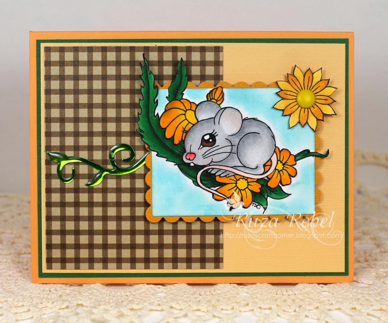 This fun guy is called Lovely Mouse from The Stamping Chef. Copic Markers, Chalk Pencils, and Distress Inks were used to color this adorable Lovely Mouse.